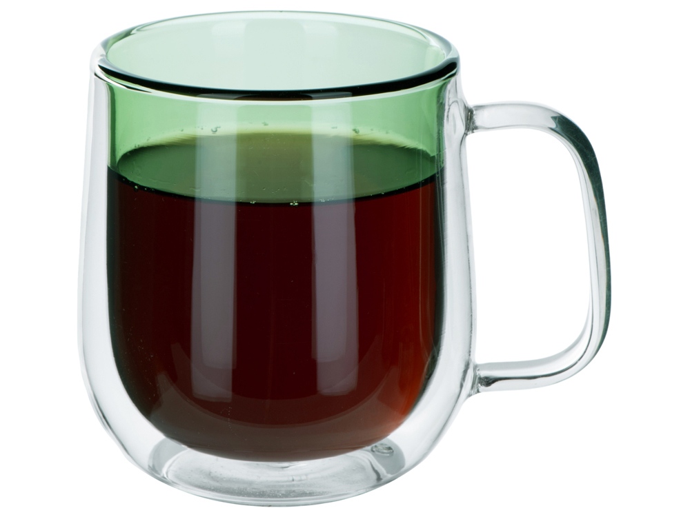 Кружка выполнена из боросиликатного стекла, которое отличается большей прочностью и легкостью, нежели стекло обычное, но при этом столь же безопасно для человека. В этой кружке можно сервировать и горячие, и холодные напитки, поскольку боросиликатное стекло стойко к высоким температурам.