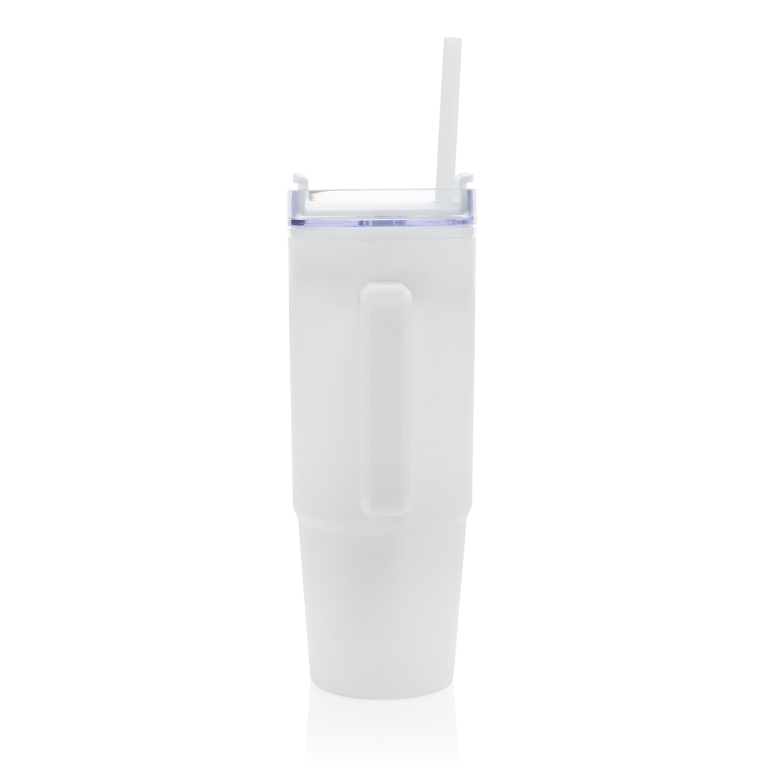 Откажитесь от одноразовых бутылок в пользу экологичной кружки Tana, изготовленной из переработанного пластика. Кружка с двойными стенками станет хорошим подарком для активных людей. Она станет незаменимым спутником во время прогулок, путешествий и поездок. Благодаря стильному внешнему виду ее можно взять с собой и в офис. В кружку можно налить любимый чай, воду или другой напиток: большой объем позволит долго наслаждаться напитком. Уникальной особенностью кружки стала вращающаяся крышка с тремя положениями. В первом кружка будет герметично закрыта и напиток не прольется в сумке или рюкзаке. Во втором положении крышка образует носик для питья, а третье позволяет вставить трубочку в специальное отверстие и пить с ее помощью. Размеры трубочки и отверстия под нее идеально подходят друг другу, и в этом положении напиток не прольется во время движения. Корпус оснащен ручкой — вам будет удобно не только держать кружку, но и носить ее. Основание оптимального размера подходит под большинство автомобильных подстаканников. Объем кружки — 900 миллилитров. Содержание вторичных материалов: 80% от общего веса изделия. Сертифицировано RCS. Эта сертификация полностью контролирует путь поставок переработанных материалов и гарантирует их наличие в изделии.