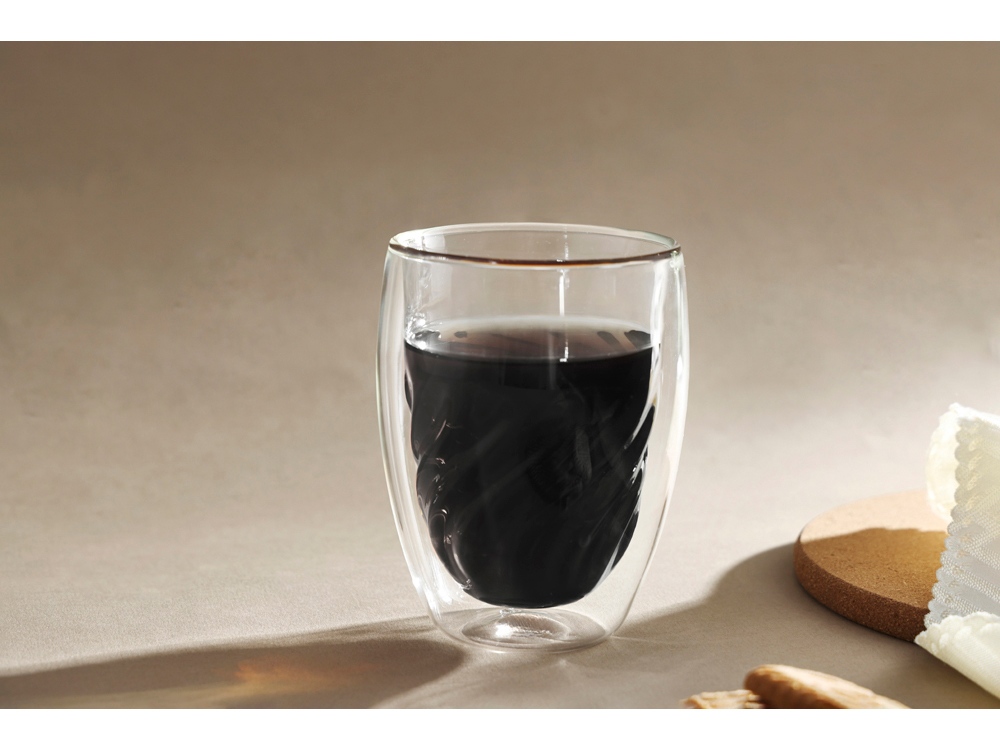 Этот элегантный стеклянный стакан Rwanda объемом 300 мл сочетает в себе современный стиль и функциональность. Двойные стенки помогают дольше сохранять температуру напитка, предотвращая нагрев внешней поверхности, а внутренняя рельефная форма создает красивый визуальный эффект, особенно при наливании кофе с молоком.