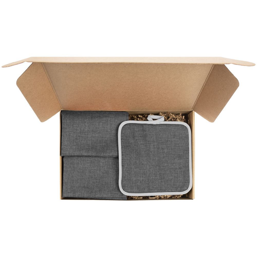 салфетка - полиэстер 100%; прихватка - полиэстер 100%; коробка - микрогофрокартон, плотность 385 г/кв.м