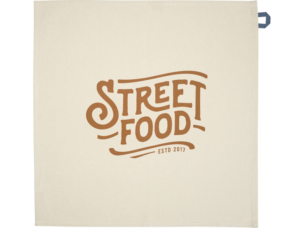 Кухонное полотенце изготовлено из 100% переработанного хлопка плотностью 200 г/м², сертифицированного GRS, с характерной контрастной петлей. Размер полотенца: 50 x 50 см. 101% GRS certified recycled cotton, 210 g/m2.