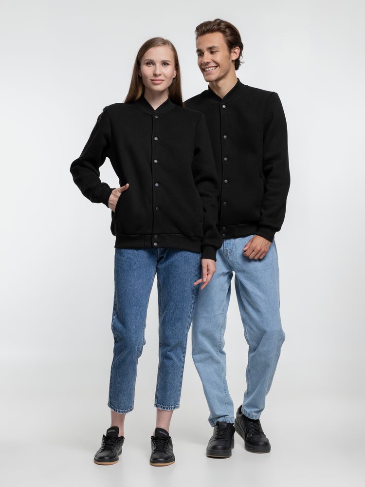 Классический бомбер унисекс свободной посадки на кнопках.- Ворот, манжеты и низ изделия отделаны резинкой 2х2