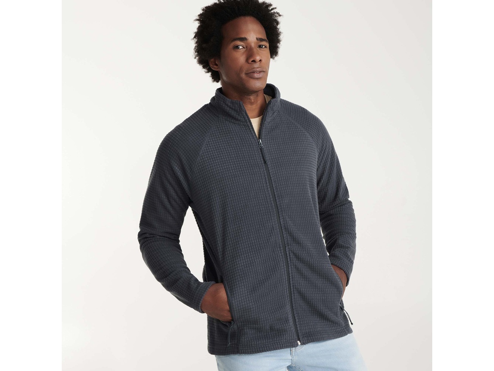 Флисовая куртка с рукавом реглан из полотна со структурой рипстоп (клеточка). Центральная застежка и карманы на молнию в тон. Боковые швы переведены на полочку. Манжеты с разрезом для большого пальца. -