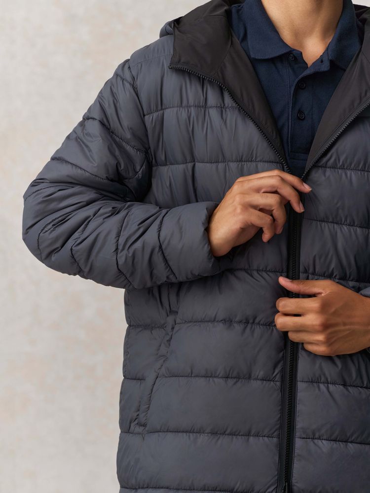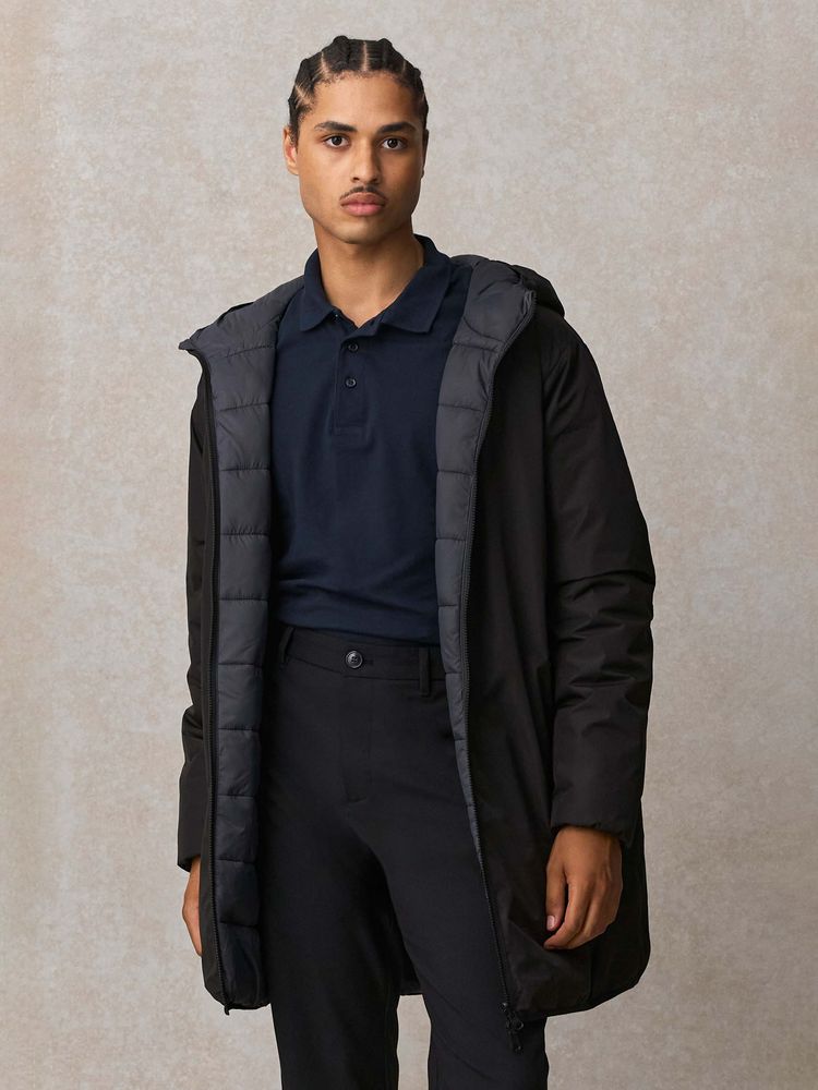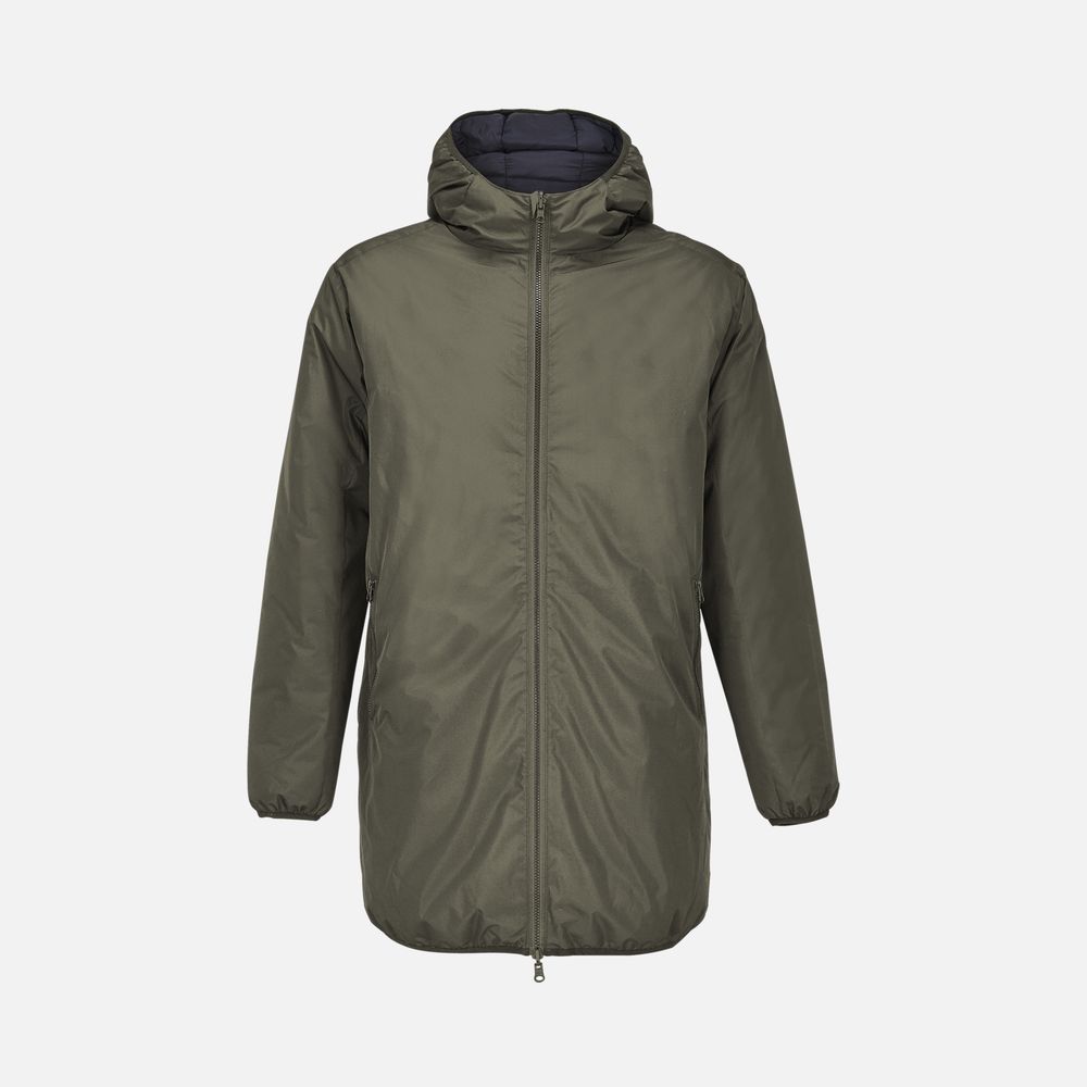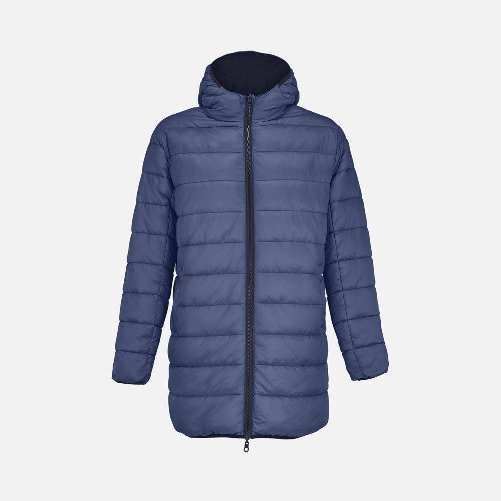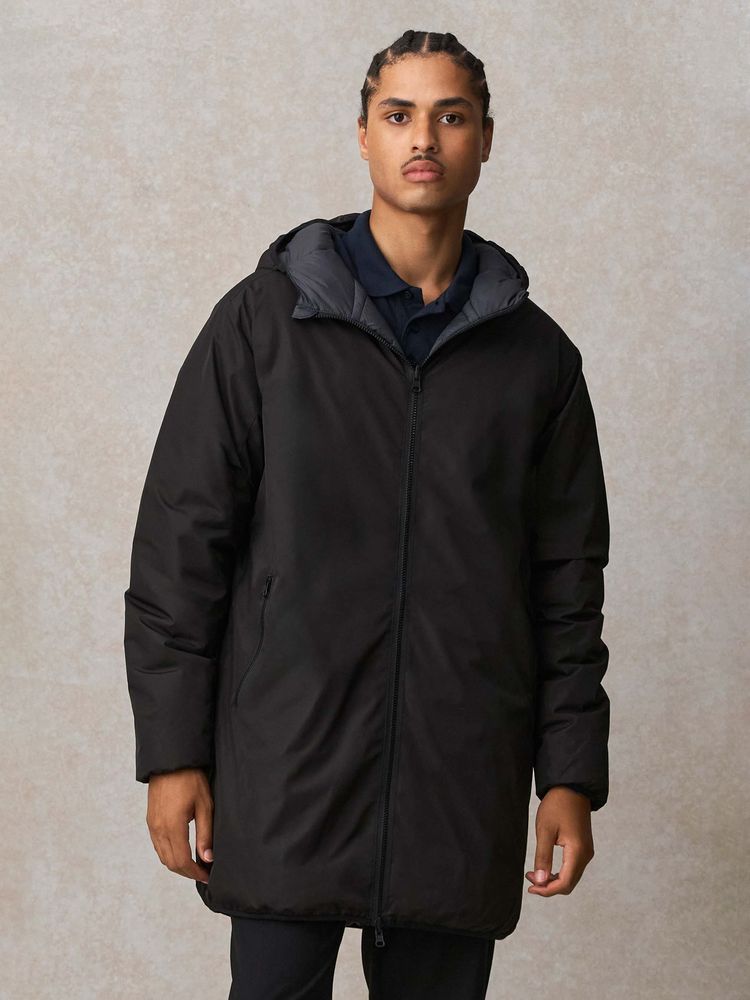 Двусторонняя утепленная парка с капюшоном. Одна сторона гладкая с водоотталкивающим покрытием, другая — стеганая. Стильная, удобная и функциональная, эта парка станет идеальным решением как для подарка, так и для повседневного использования.- Разъемная молния с двойным бегунком