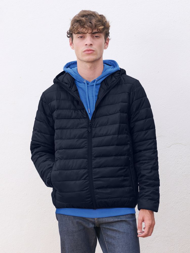 Мужская куртка с капюшоном комфортной посадки.- Два боковых кармана на молнии и два внутренних кармана без застежки