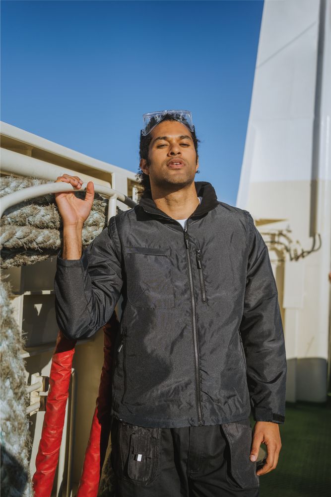 Куртка-трансформер, которая превращается в утепленный жилет. Выполнена из ткани оксфорд с водоотталкивающим покрытием. Модель унисекс.- Съемные рукава на молнии