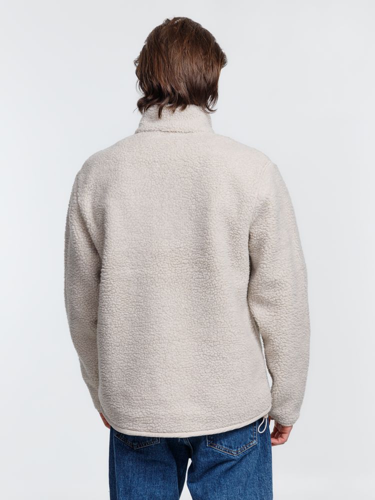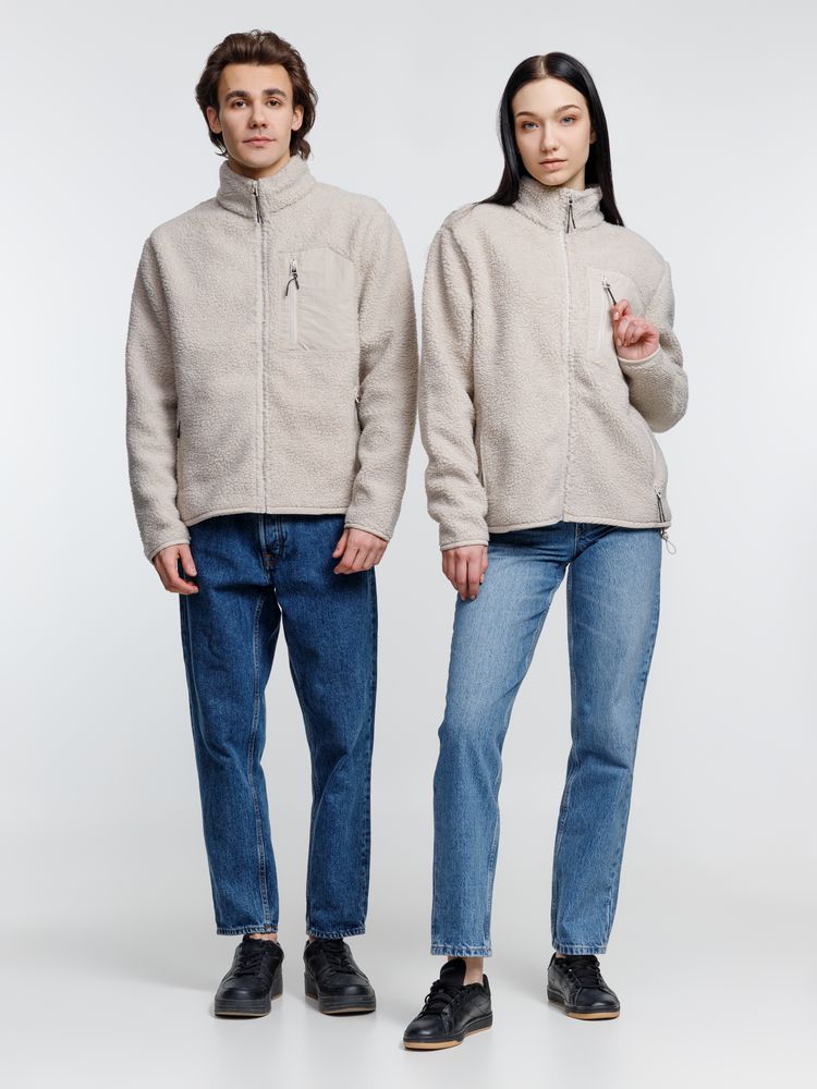 Куртка унисекс из фактурной искусственной шерпы с гладкой отделкой из таслана.- Воротник-стойка