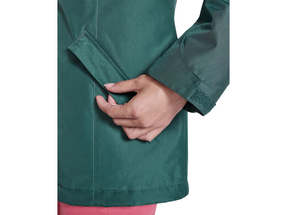 Женская утепленная парка приталенного силуэта из водоотталкивающего материала. Высокий воротник, капюшон с застежкой на липучку. Центральная молния в тон. Боковые карманы на молнии с клапанами. Внутренний карман на липучке. Регулируемые манжеты на липучке.