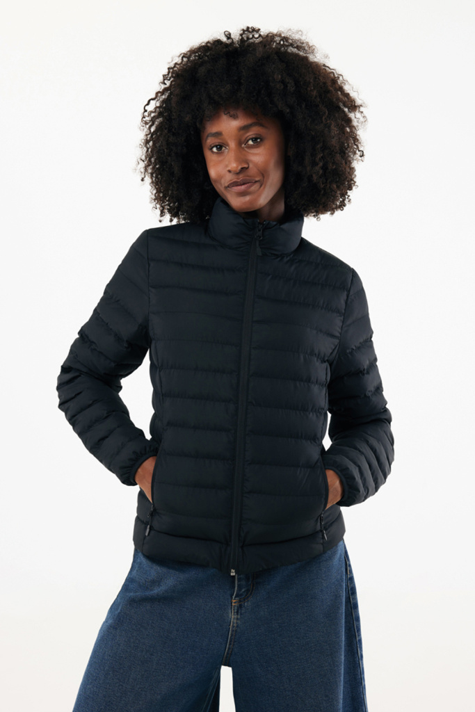 Женская стеганая куртка изготовлена из 100% переработанного полиэстера AWARE™. Наполнитель — 100% переработанный полиэстер. Модель имеет двухстороннюю молнию спереди и практичные карманы на молнии в боковых швах. Все молнии дополнены дополнительными бегунками в тон. Манжеты с эластичной окантовкой, все внутренние швы обработаны переработанной бейкой.