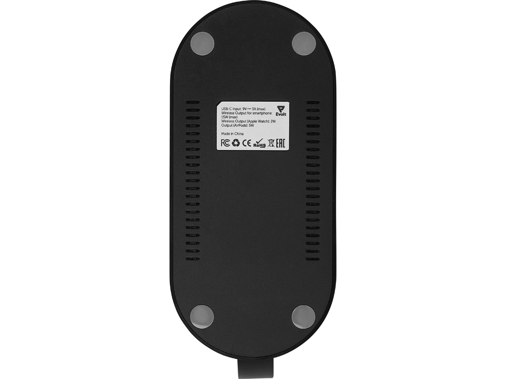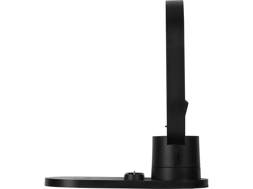 Настольная зарядная станция с лампой для трёх устройств - смартфона с поддержкой беспроводной зарядки, часов Apple и наушников Apple (разъем Lightning). Регулируемый уровень яркости (диммер). Лампу можно вращать вокруг своей оси. Для удобства транспортировки лампу можно отсоединить.