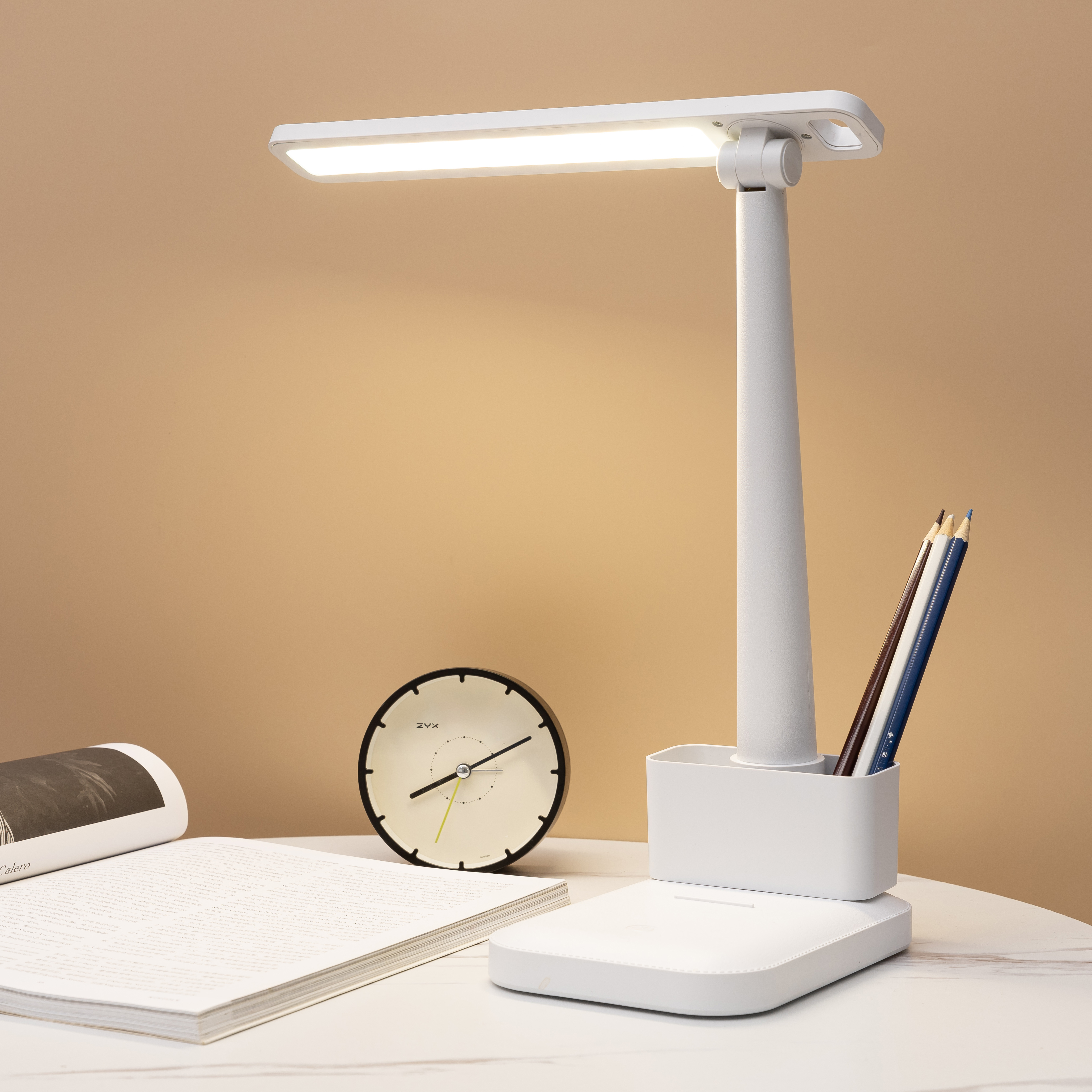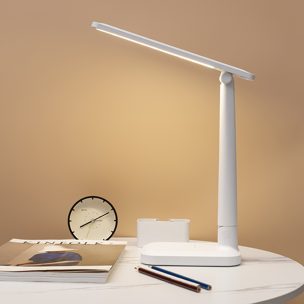 Настольная лампа Melissa станет вашим помощником во время чтения, учебы или работы (три цветовых температуры 3000K-4500K-6400K). Лампа с элегантный дизайном не только источник дополнительного освещения, но и органайзер, который поможет систематизировать работу в офисе или дома. Благодаря встроенному аккумулятору лампу можно использовать в автономном режиме (емкость батареи 1200 mAh). Вход: 5V-2A / 3.7V (потребляемая мощность 5W). Световой поток ≈ 250 lm. Индексом цветопередачи >80 CRA. В комплекте кабель USB и инструкция.- Виды нанесений: УФ-печать А2, Тампопечать