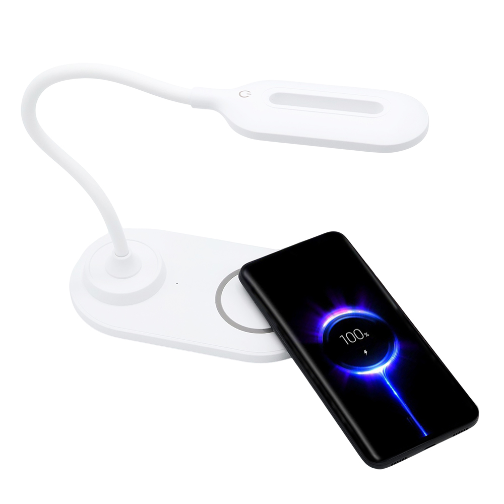 Настольная лампа с беспроводной зарядкой. Совместимость – все мобильные телефоны с поддержкой Qi. Входной сигнал 5V-2A/9V-1.67A. Напряжение 5 Вт/7,5 Вт/10 Вт. Рабочая частота 110-205 кГц. В комплекте кабель USB и инструкция. Область зарядки смартфона поддерживает все Android/Ios устройства с функцией беспроводной зарядки. Для работы беспроводной зарядки необходимо подключать устройство к сети через адаптер.- Виды нанесений: Тампопечать большая