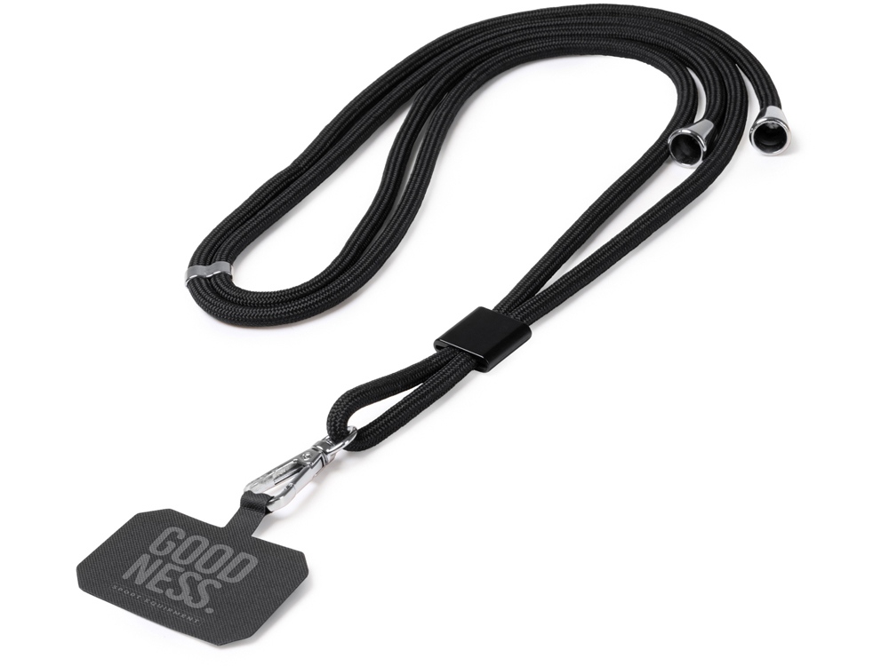 Держатель для мобильного телефона на шнурке из переработанного полиэстера RPET. Регулируемый ремешок, в комплект входит карабин. -
