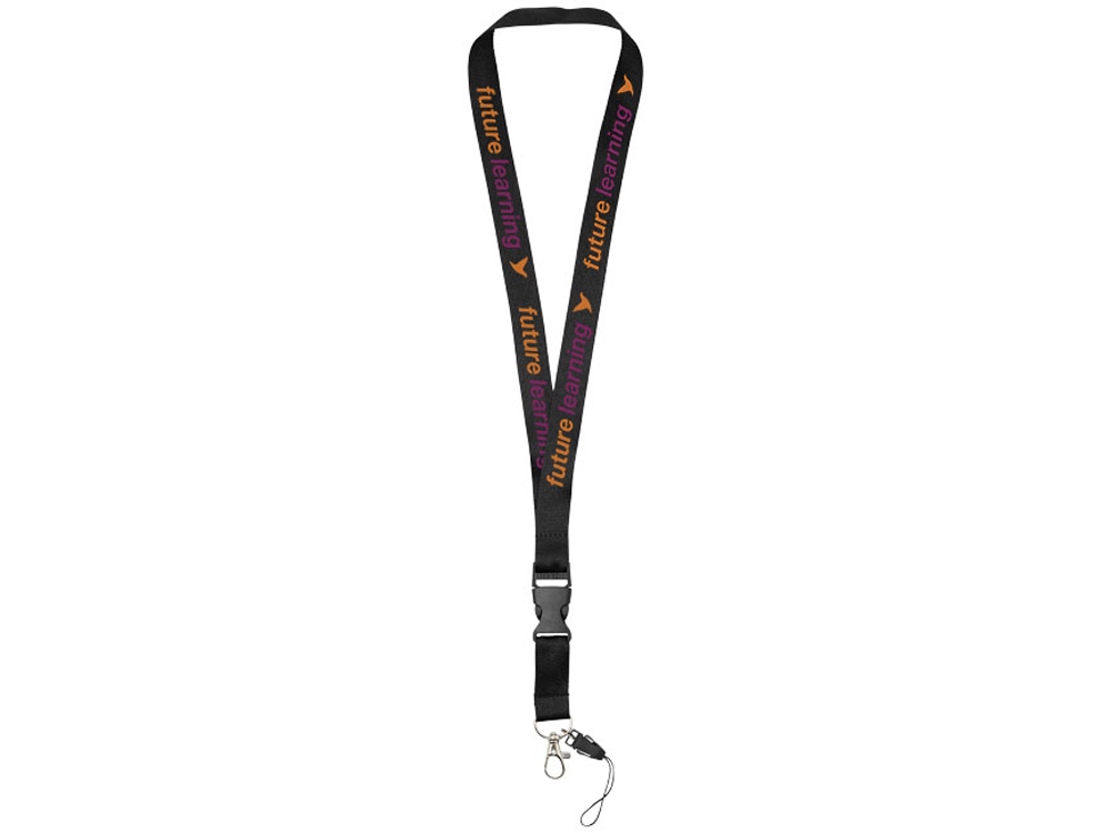 Многофункциональный шнурок с отстегивающейся пряжкой, овальным крючком с зажимом и держателем для телефона. Идеально подходит для бейджа, удостоверения личности или ключей. Предлагается широкий выбор цветов с большим участком для нанесения логотипа. Полиэстер. -