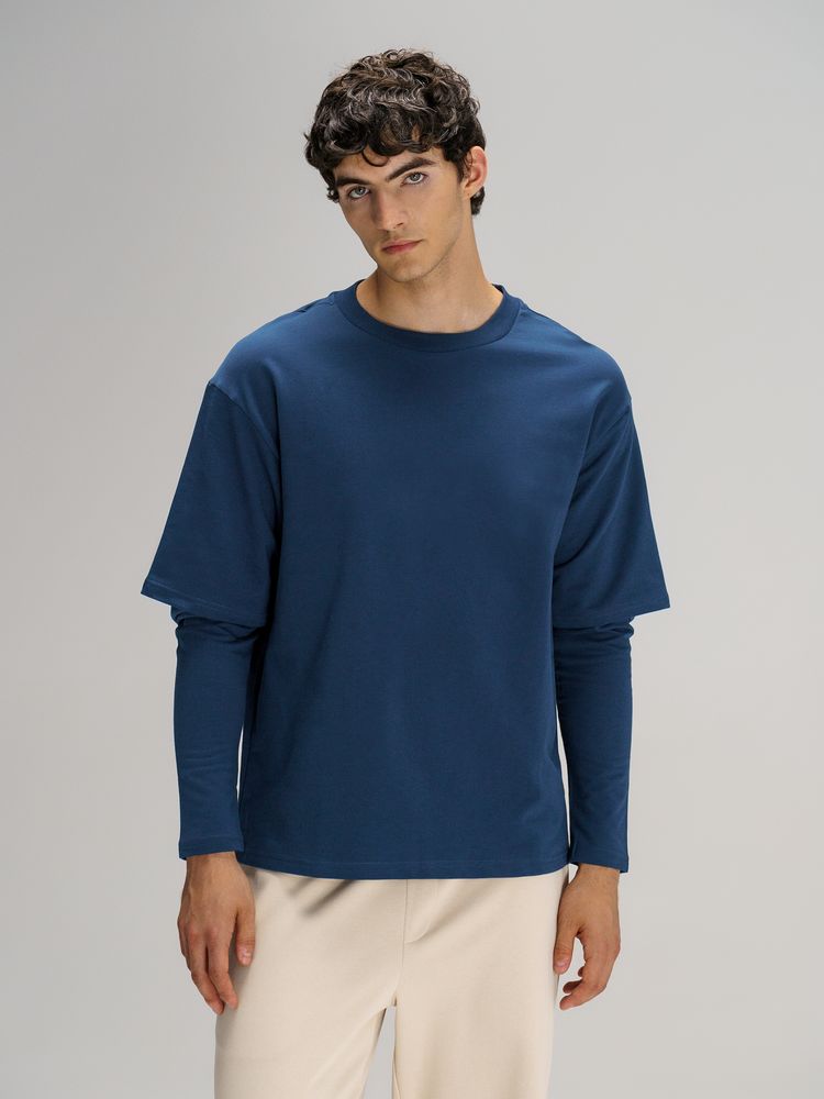 Футболка оверсайз в трендовом исполнении double sleeve (с двойным рукавом) — отличный вариант для создания повседневного образа. Легкая дышащая хлопковая ткань с гладкой трикотажной фактурой приятна к телу, а расслабленный оверсайз силуэт делает футболку Kosmos идеальной для любых жизненных маневров.