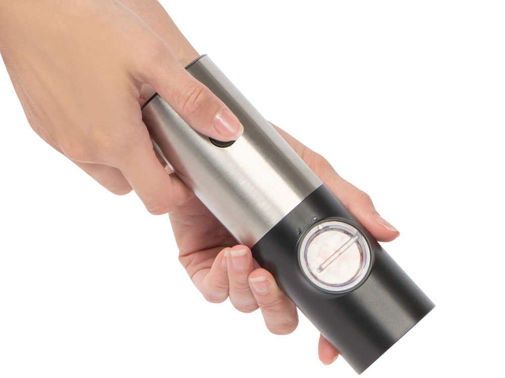 Электрическая мельница Grind от Eat&Bite Select подходит для измельчения крупной соли, перца и других специй, например, таких как гвоздика, тмин или кориандр. Для этого достаточно просто нажать на круглую кнопку на корпусе устройства. Преимуществом добавления в блюда только что смолотых пряностей является сохранение их вкуса и аромата, которые не потеряются в процессе длительного хранения в уже измельчённом виде.
