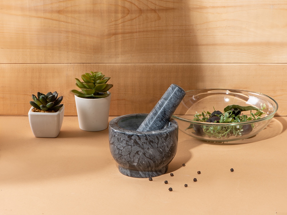 Ступка из натурального мрамора Pesto — по-настоящему благородное дополнение вашей кухни, которое не только украсит ее, но и пригодится при готовке. Материал не впитывает запахи, легко моется, имеет приятную текстуру и выглядит действительно достойно.