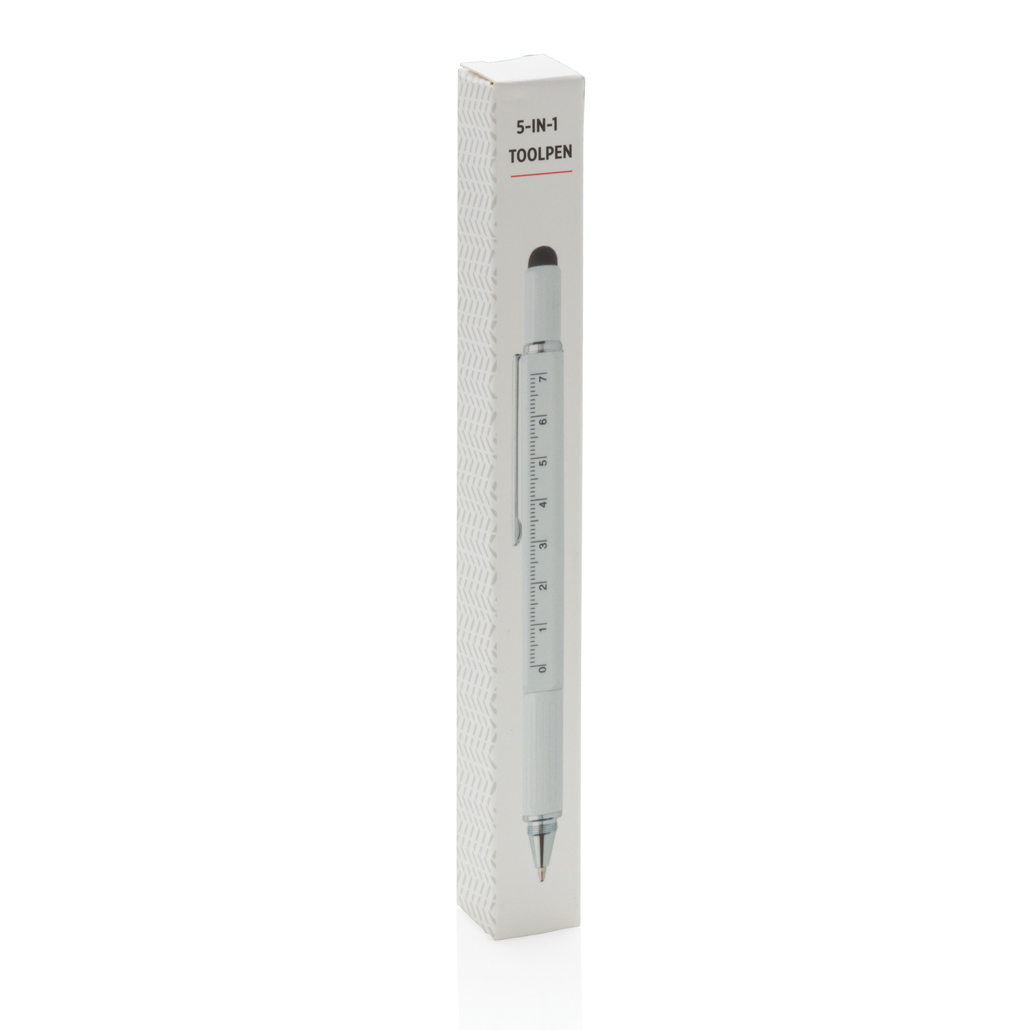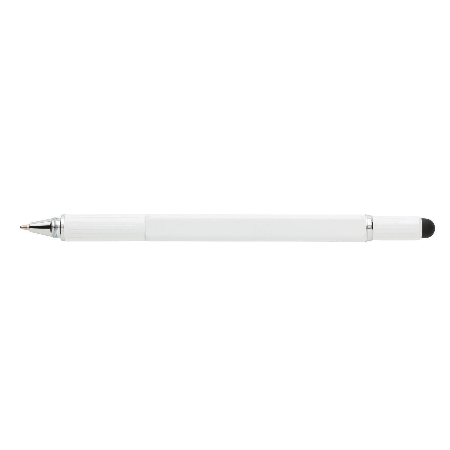 Многофункциональная ручка совмещает в себе линейку длиной 7 см, спиртовой уровень, отвертку, стилус и синюю шариковую ручку, чернил в стержне которой хватит на линию длиной до 400 м. Корпус ручки изготовлен из высококачественной латуни и дополнен удобным алюминиевым клипом.
