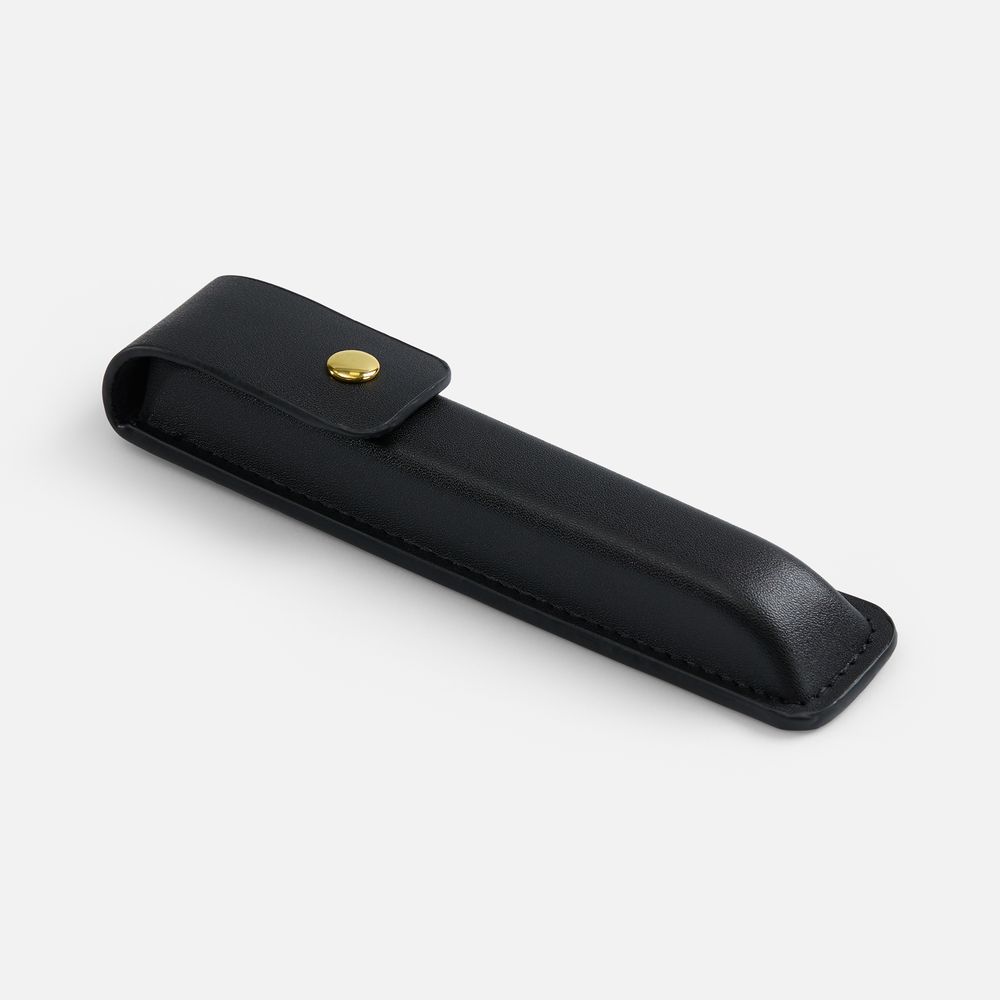 Футляр изготовлен из искусственной кожи, застегивается на кнопку.- Механизм ручки: колпачок