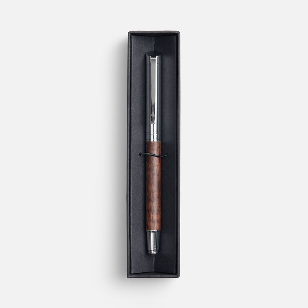 Роллер Waldo — сочетание элегантности и надежности. Корпус роллера выполнен из хромированного металла и дополнен ореховым деревом, что придает изделию неповторимый теплый оттенок и естественную текстуру.- Корпус ручки разбирается, стержень легко заменить.