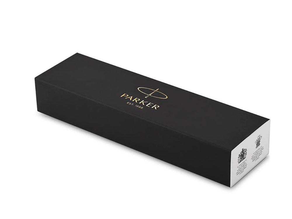 Лакированный корпус из отшлифованного металла с круговой полировкой превосходно сочетается с позолоченными декоративными элементами. Ручка упакована в подарочную коробку Parker. -