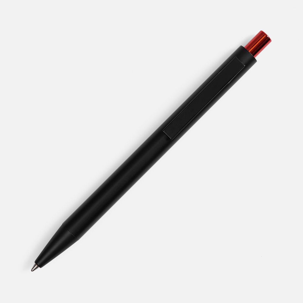 Ручка строгих форм в черном матовом корпусе с цветными деталями, которая точно может удивить, — гравировка на ней вскрывается цветом в тон кнопке.- Механизм ручки: нажимной.