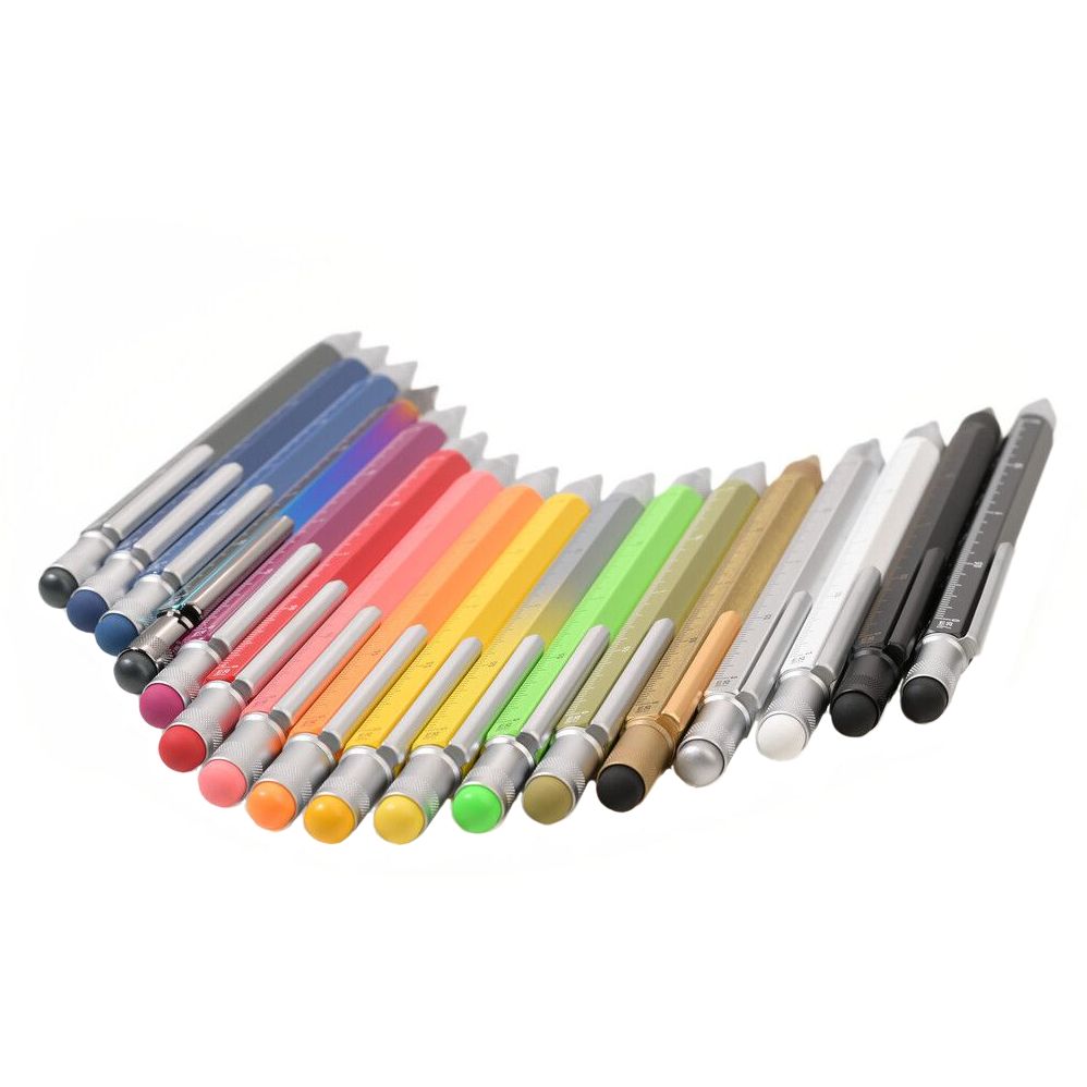 Разные метрические сетки на гранях позволяют быстро и легко перевести размеры с чертежей. Стилус упрощает работу со смартфоном или планшетом. Уровень и отвертки дают возможность проверить и подкорректировать результат инженерной работы прямо на месте. Реализации вашего проекта ничто не помешает!- Шариковая ручка с четырьмя метрическими линейками (1:20, 1:25, 1:50, 1:100).