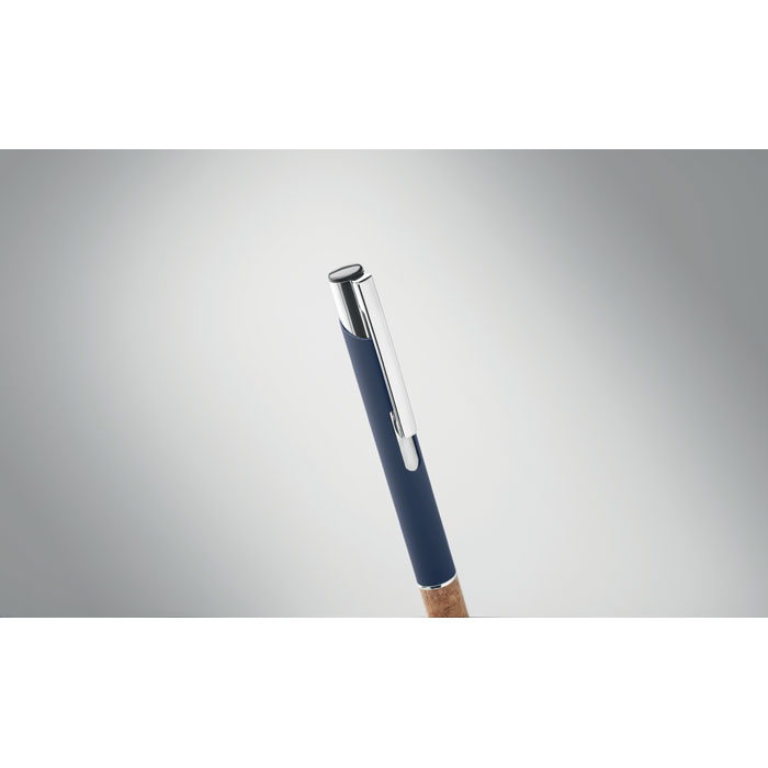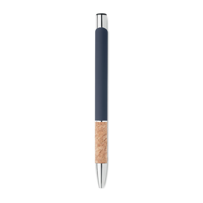 Кнопочная ручка из алюминия и пробки. Синие чернила. -