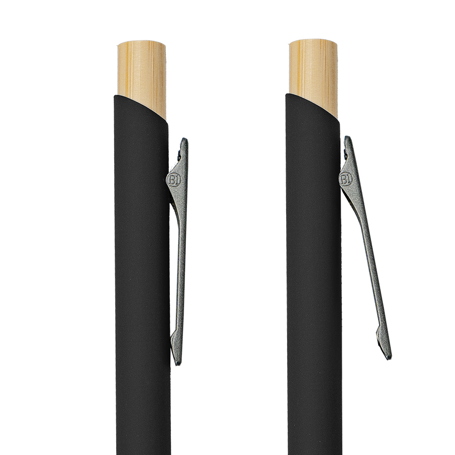 Экстравагантная модель ручки FRESCO. Корпус алюминиевый с матовым покрытием soft touch - ручку приятно держать в руке. Металлический клип-прищепка является эксклюзивом бренда В1. Отделка из натурального бамбука добавляет модели оригинальность. Кнопка нажимного механизма оптимального диаметра удобна для подушечки пальца. Визуально ручка выглядит очень благородно. В использовании гарантированно комфортна. • Цвет, близкий к Pantone Black• Размер φ 10 x 140 мм• Корпус из алюминия с покрытием soft touch• Металлический клип-прищепка• Отделка - бамбук• Нажимной механизм подачи стержня• Пулевидный пишущий узел 1.0 мм• Длина линии письма 800-1000 м• Чернила Dokumental, цвет чернил синий• Сменный стержень Parker type• Виды нанесения: гравировка -