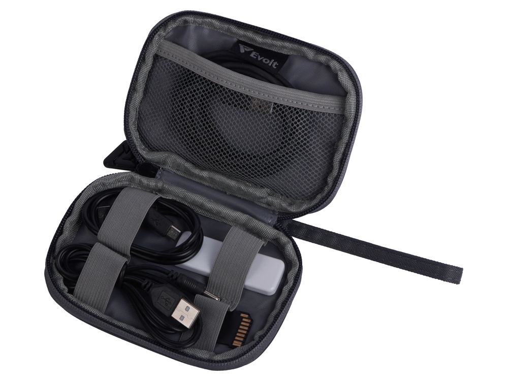 • Сетчатый карман и отсеки на резинке позволяют аккуратно распределить провода так, чтобы они не спутывались и были легкодоступны в любой момент