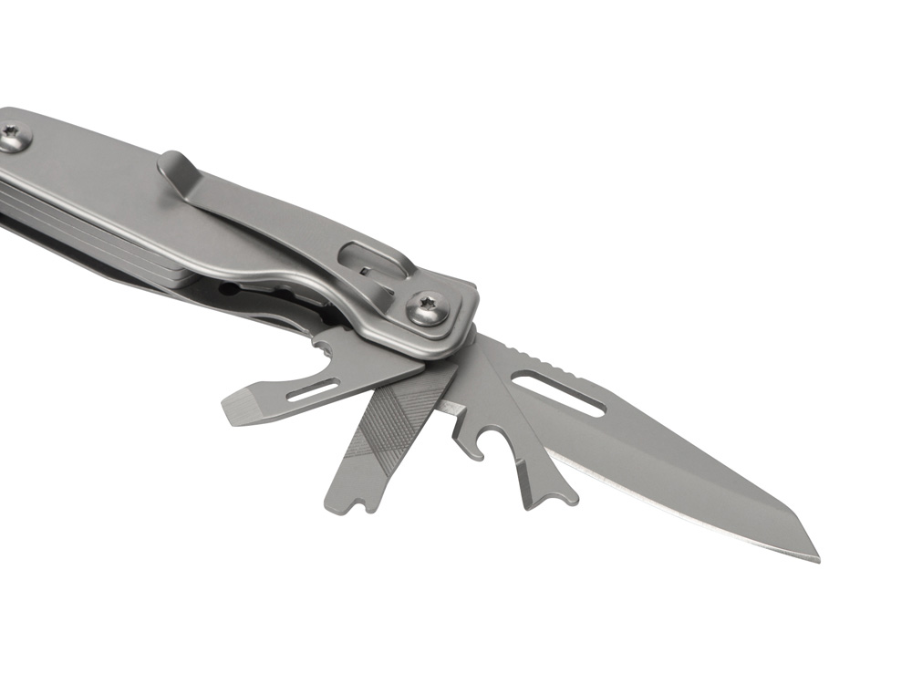 Мультитул-пассатижи Combo бренда roq выполнен из нержавеющей стали. Матовое покрытие позволяет сделать брендирование более заметным. Чтобы не потерять инструмент, его можно прикрепить клипом за ремень или подвесить за складное кольцо. Поставляется в индивидуальной коробке вместе с чехлом.