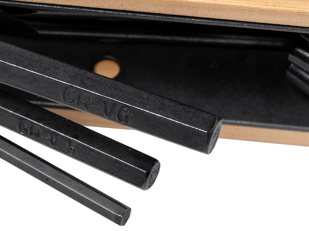 Многофункциональный инструмент с отвертками и шестигранными ключами. Нержавеющая сталь. Накладки на корпус из дерева.