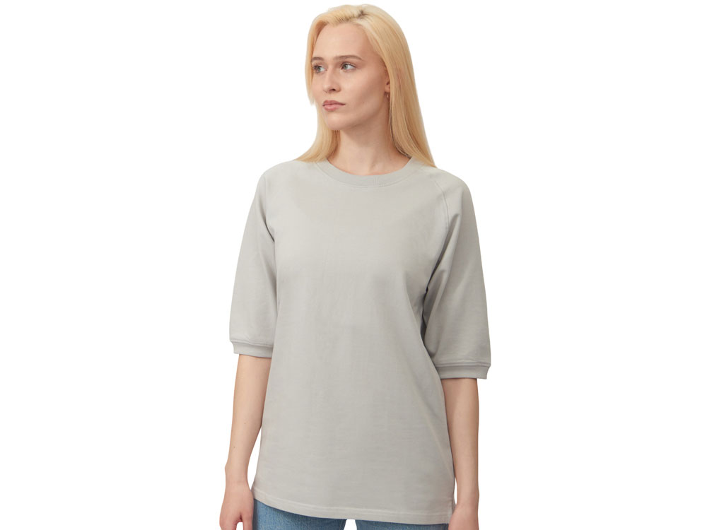 Футболка выполнена из хлопкового френч терри с петельками на изнаночной стороне. Горловина обработана рибом 2х2 и дополнительно усилена тесьмой-елочкой с внутренней стороны спинки и дополнена кокеткой по спинке для нанесения логотипа клиента. Рукав реглан продублирован рибом по низу. Разрезы в боковых швах. Гладкая поверхность полотна позволяет идеально нанести изображение. Футболка комфортного силуэта.