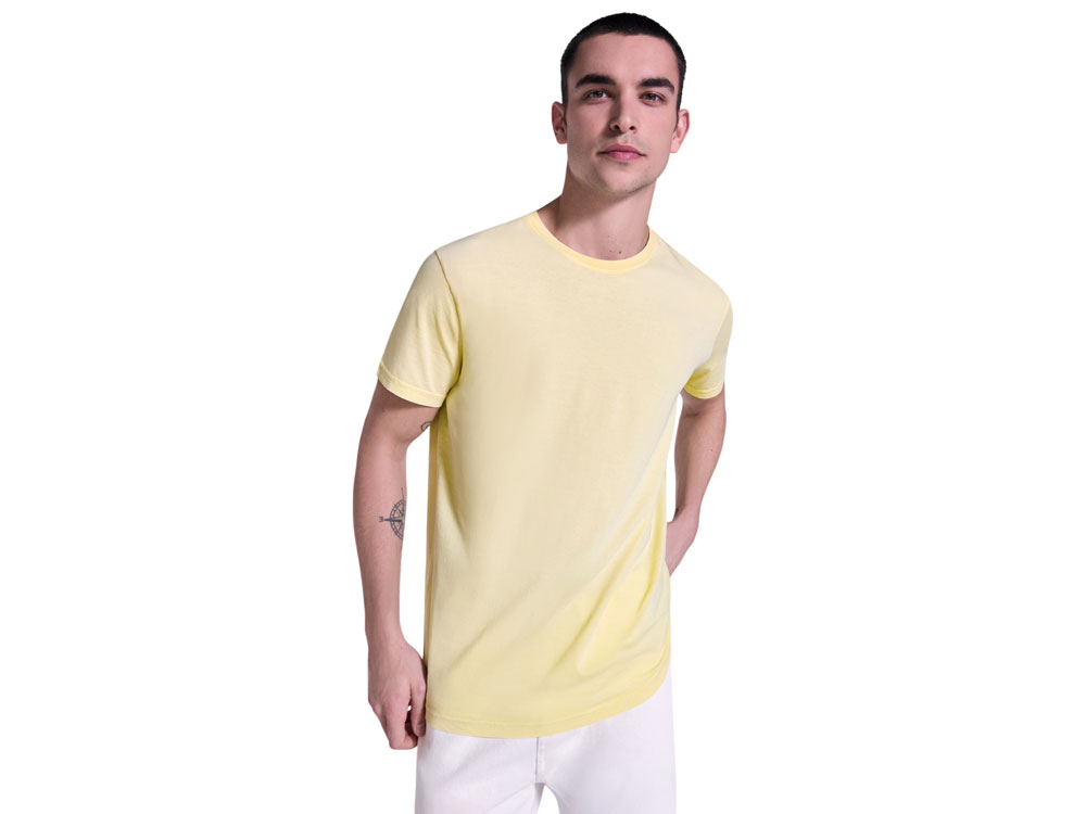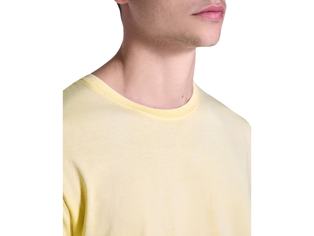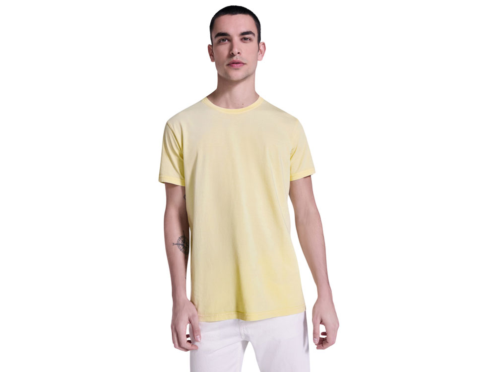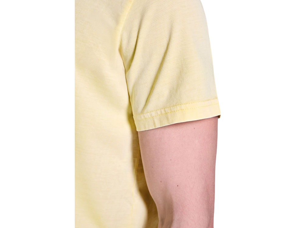 Мужская футболка с коротким рукавом из 100% хлопка с аксидной стиркой. Круглый вырез горловины из риба 1х1. Отстрочка в тон по горловине. -