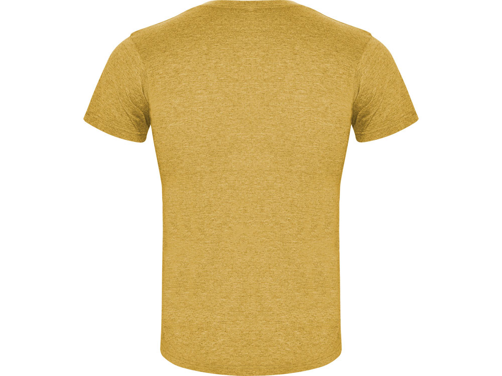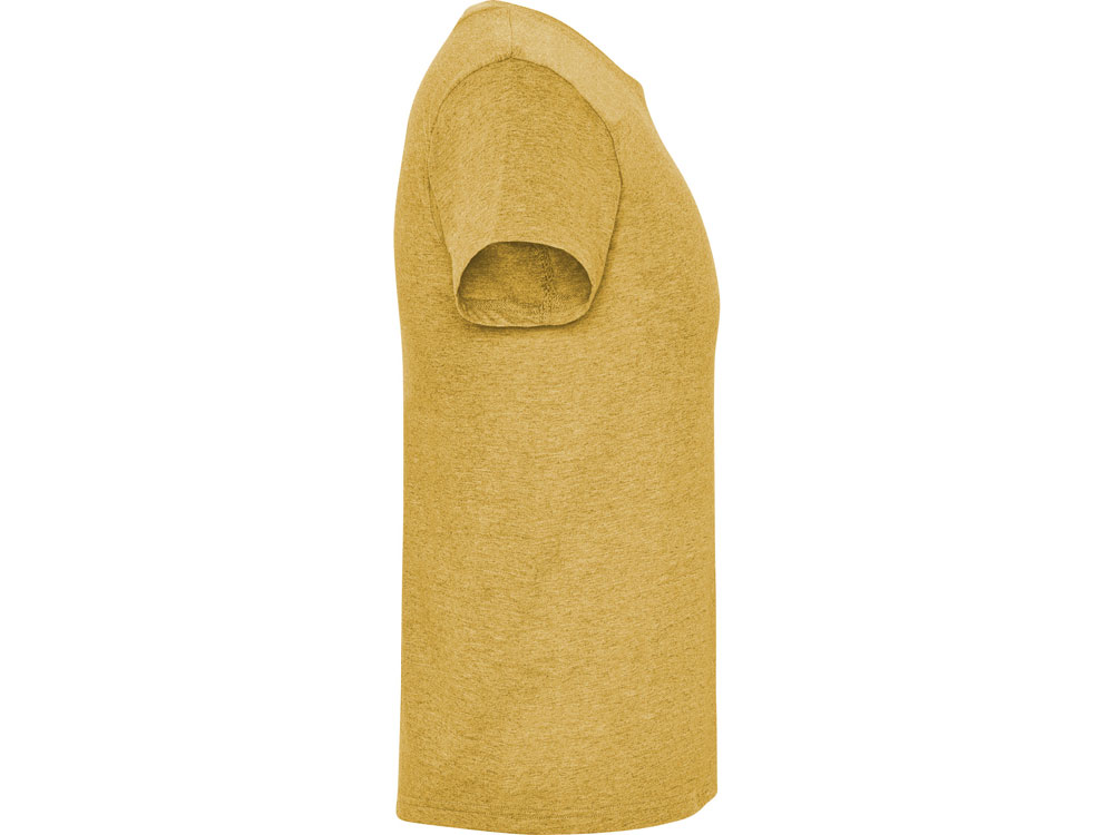 Футболка без боковых швов с коротким рукавом в меланжевом эффекте. Риб горловины 1х1 дополнительно укреплен двойной строчкой. -