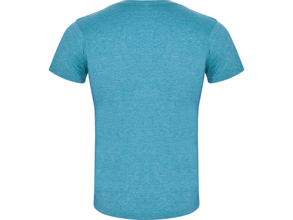 Футболка без боковых швов с коротким рукавом в меланжевом эффекте. Риб горловины 1х1 дополнительно укреплен двойной строчкой. -