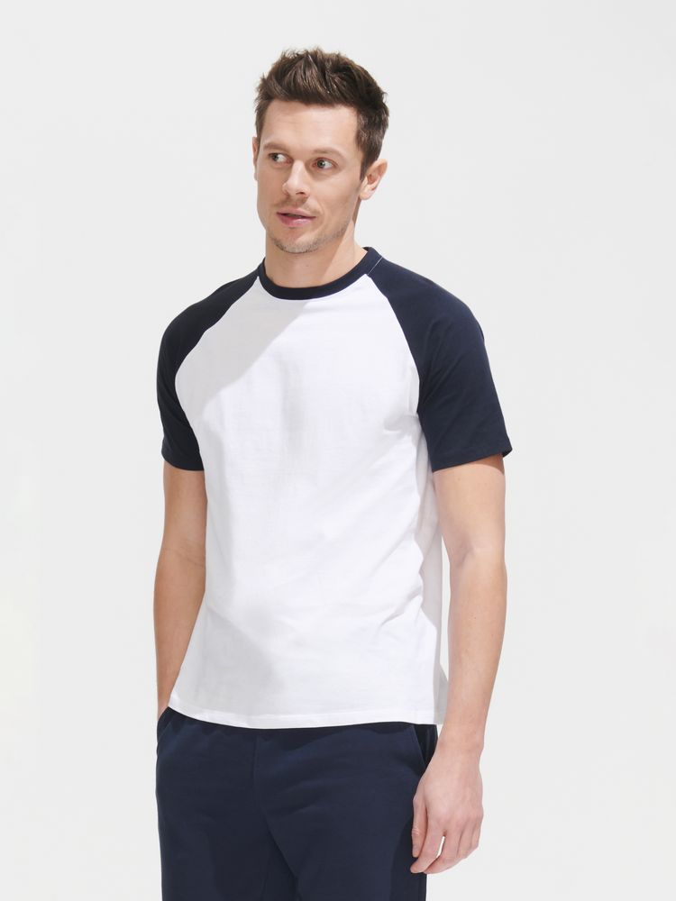 Отличная футболка с рукавом реглан. Укрепляющая тесьма по вороту, край ворота — резинка с эластаном. Без боковых швов.