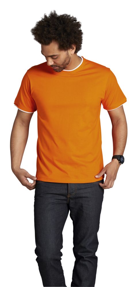 Футболка мужская с контрастной отделкой Madison 170, оранжевый/белый