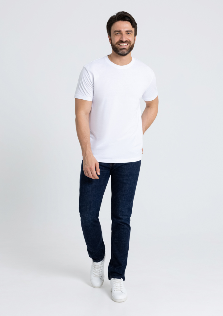 Мужская футболка прямого силуэта с округлым воротом и втачным рукавом.
