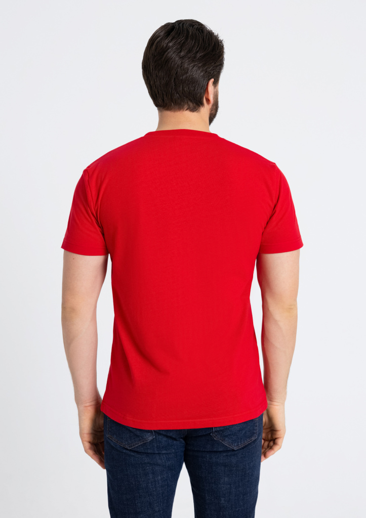 Футболка выполнена из мягкого и прочного полотна из 100% хлопка. Материал обладает отличными влагоотводящими и воздухопроницаемыми свойствами. Ткань легкая и приятная к телу.