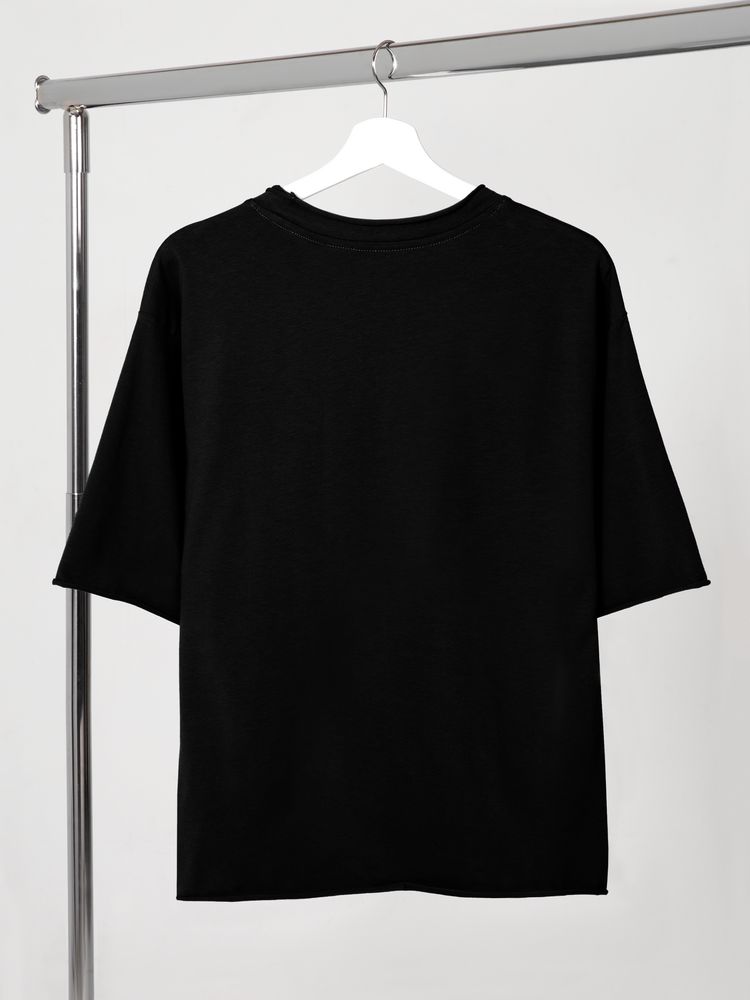 Футболка унисекс оверсайз со спущенным плечом.- Эластичный ворот