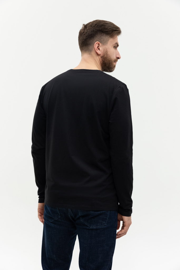 Универсальная футболка прямого силуэта с округлым воротом и длинным втачным рукавом. Плечевые швы и шов горловины усилены настрочной бейкой из основного полотна.