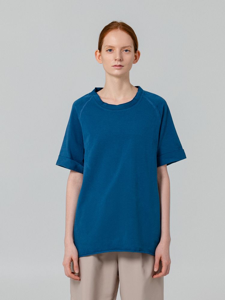 Футболка унисекс свободного кроя с рукавами реглан.- Воротник рибана тон в тон
