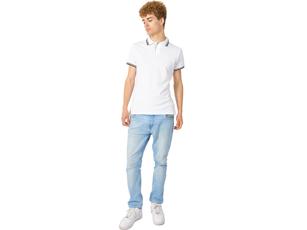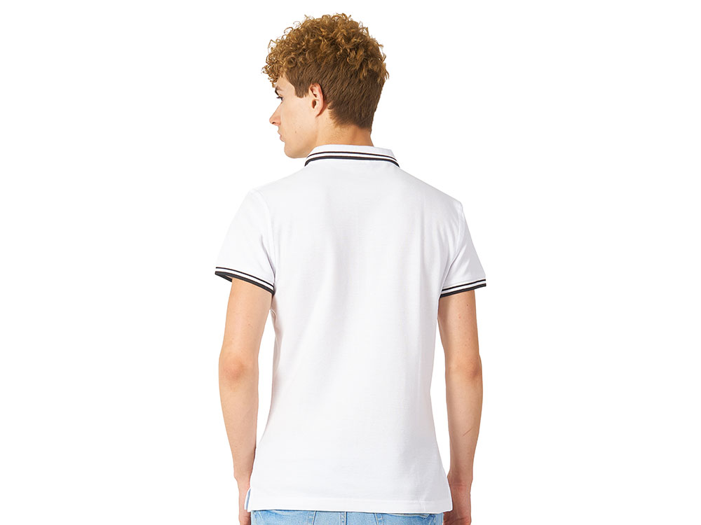 Рубашка-поло Erie с окантовкой. Воротник и манжеты резинка 1х1. Мужская модель с двумя пуговицами, женская - 4 пуговицы в тон изделия. Обшивка внутри воротника. Женская модель с разрезами по бокам. Женская модель приталена. Пике, 100% чесаный хлопок. Плотность 180 г/м2. -