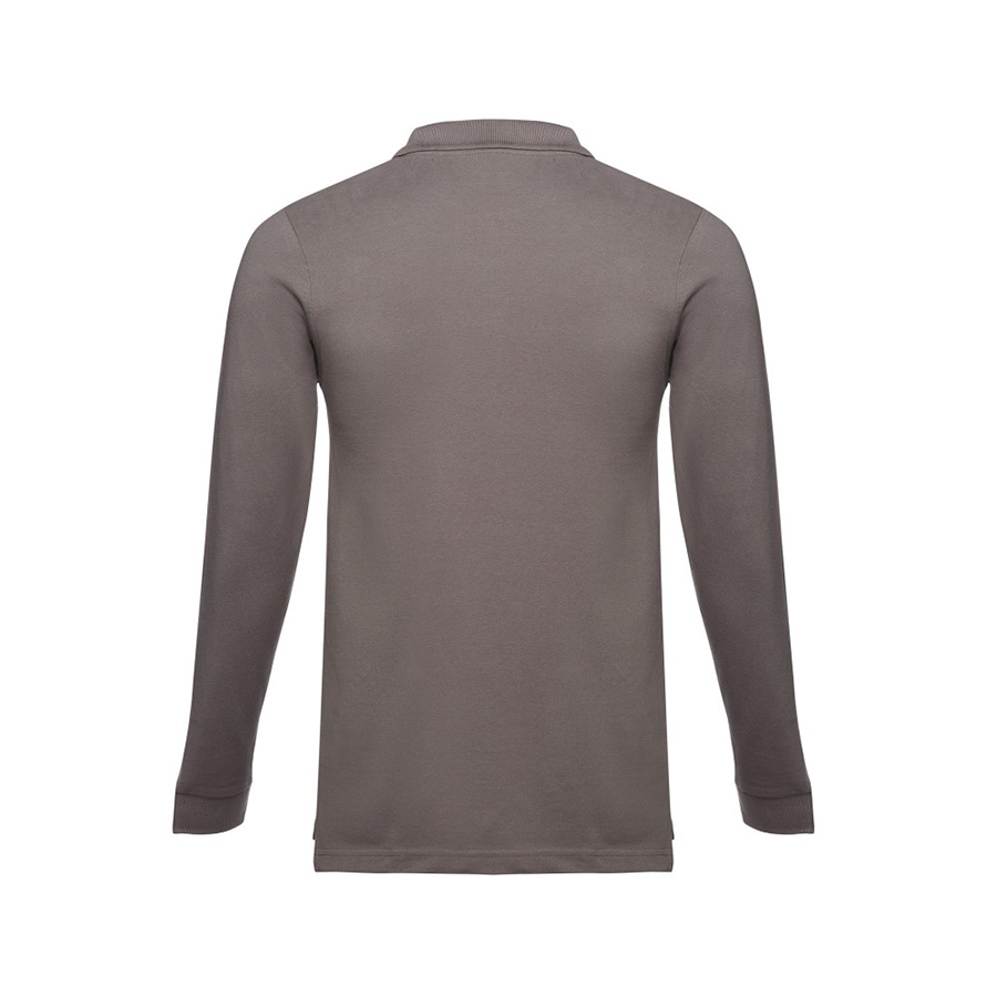Мужская рубашка-поло с длинным рукавом из хлопковой ткани-пике. Полотно футболки упругое и гладкое благодаря обработке ферментами "enzyme wash" и сохраняет форму при стирке. Модель полуприлегающего силуэта. Благодаря манжете из риба 1х1 рукав смотрится очень аккуратно. Воротник также выполнен из риба 1х1, внутри ворота - укрепляющая тесьма по горловине. Планка с 3 пуговицами в цвет основной ткани изделия. Запасная пуговица на ярлыке во внутреннем боковом шве.Цвет, близкий к Pantone Cool Grey 10 C -