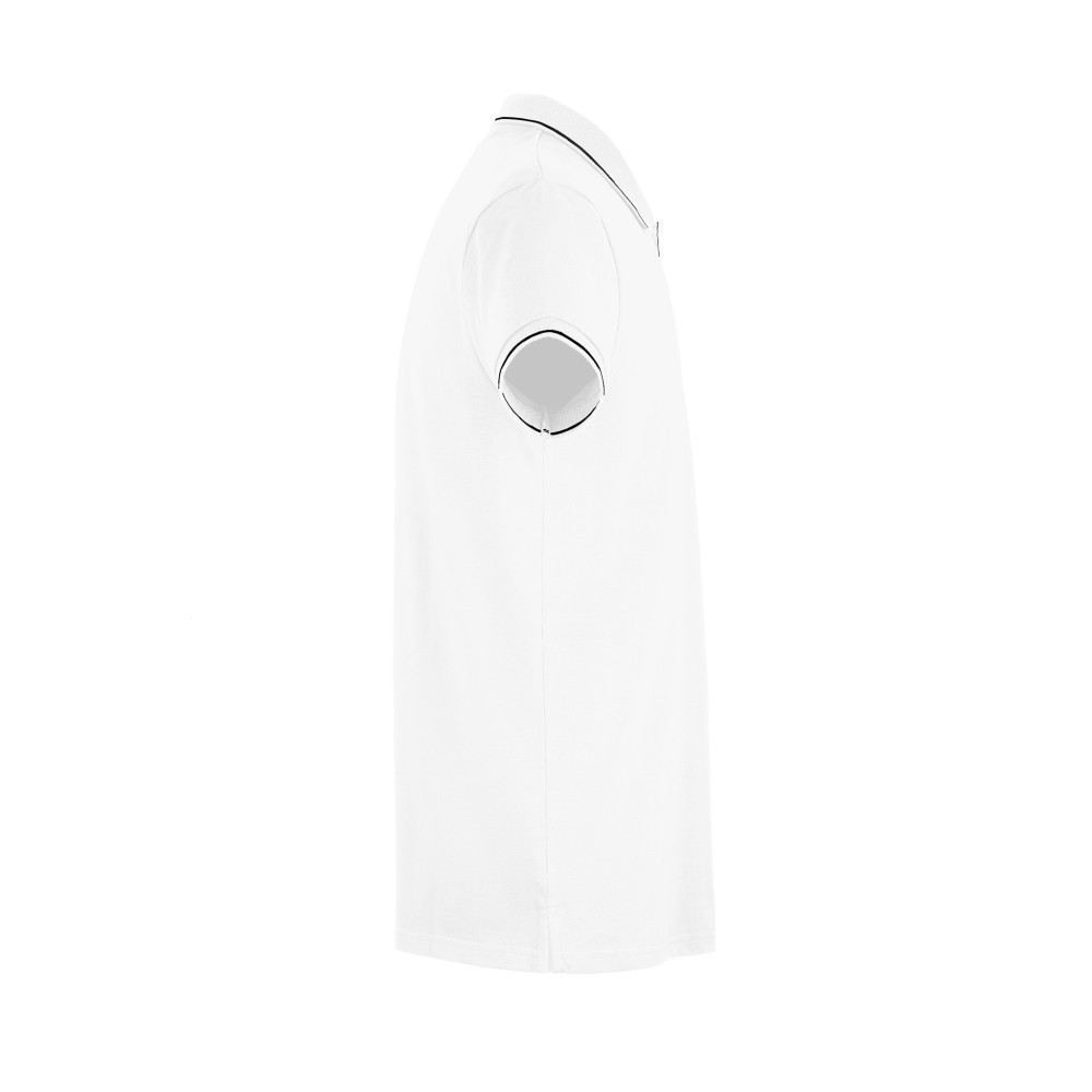 Мужская рубашка-поло из хлопковой ткани-пике. Полотно футболки упругое и гладкое благодаря обработке ферментами "enzyme wash" и сохраняет форму при стирке. Модель полуприлегающего силуэта. Благодаря манжете из риба 1х1 рукав смотрится очень аккуратно. Воротник также выполнен из риба 1х1, внутри ворота - укрепляющая тесьма по горловине. Манжета на рукавах и край воротника выполнены контрастным цветом. Планка с 3 контрастными пуговицами. Запасная пуговица на ярлыке во внутреннем боковом шве.Цвет, близкий к Pantone Black C -