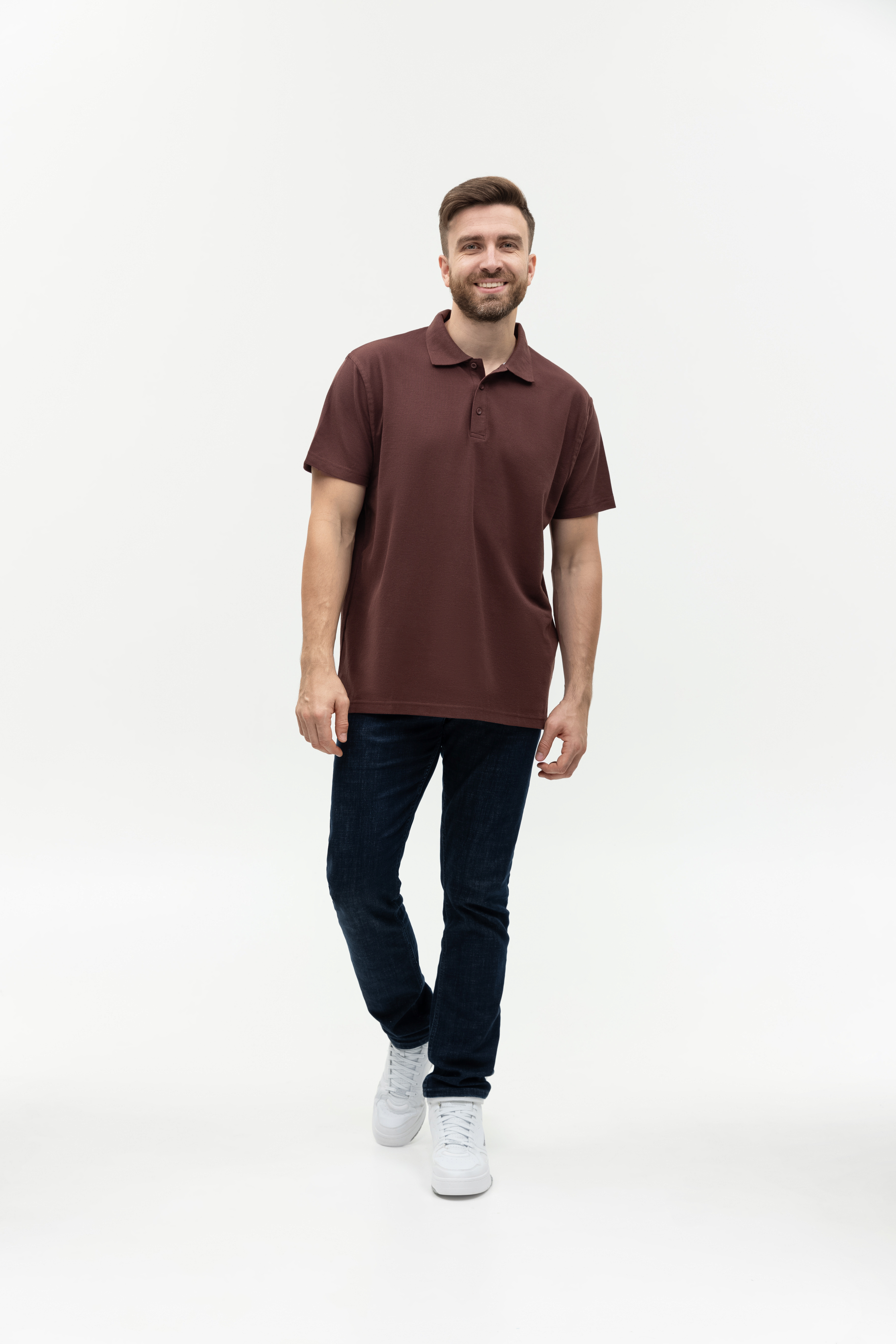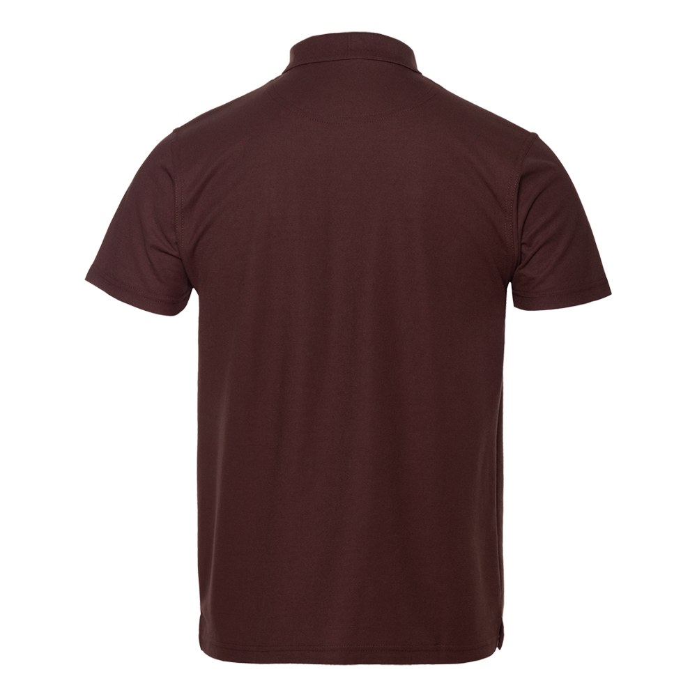 Поло выполнено из фактурной смесового ткани (65% хлопок, 35% полиэстер), благодаря чему изделие хорошо пропускает воздух и практически не мнется.