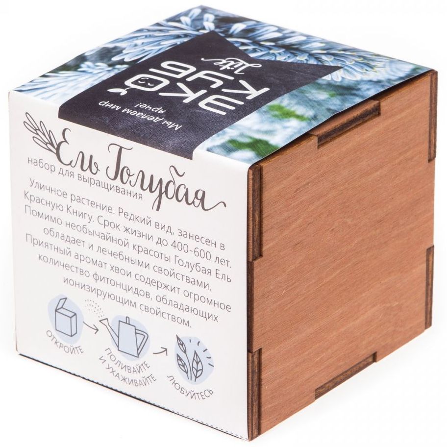 В наборе: деревянный куб, бумажный стаканчик, питательный грунт, семена, вермикулит.