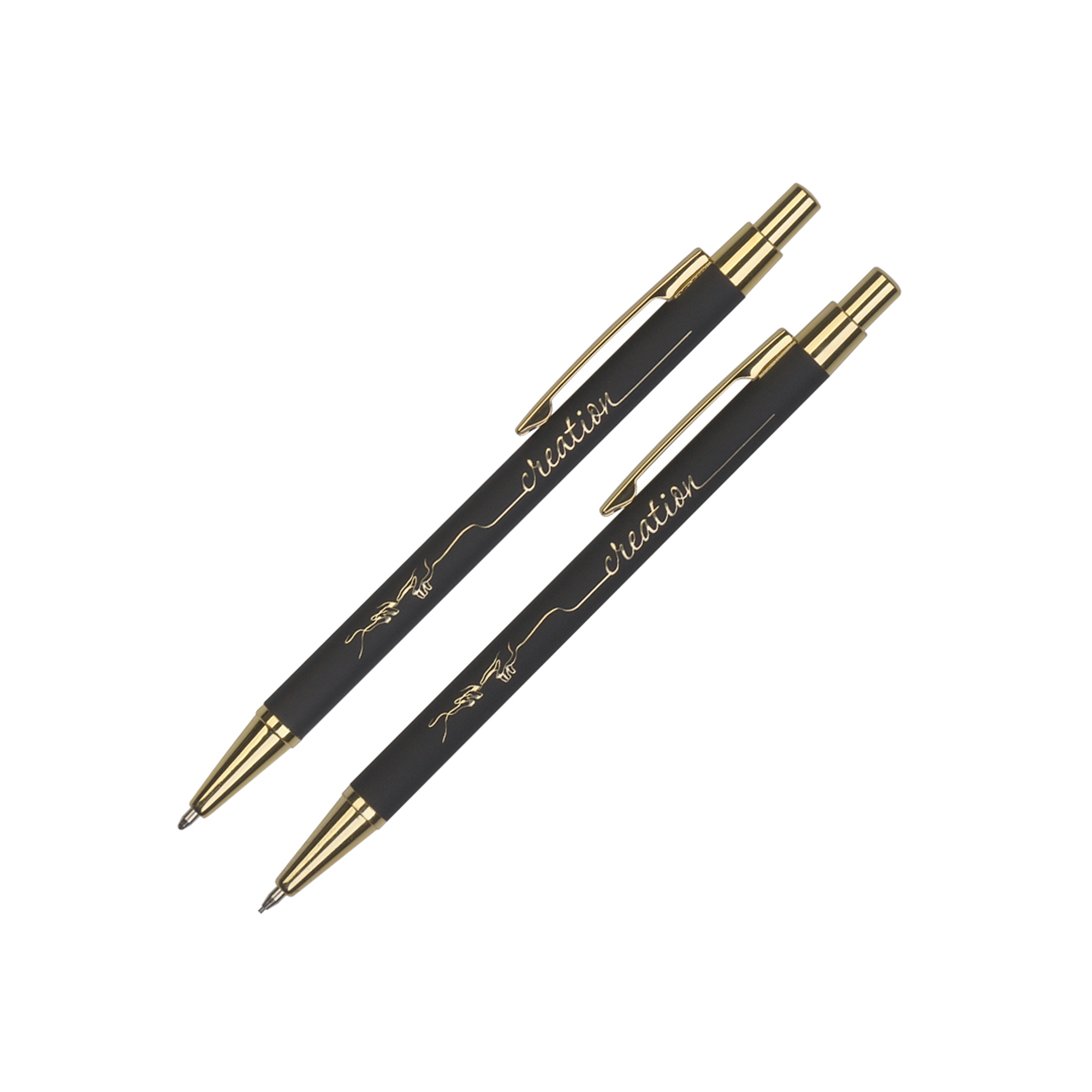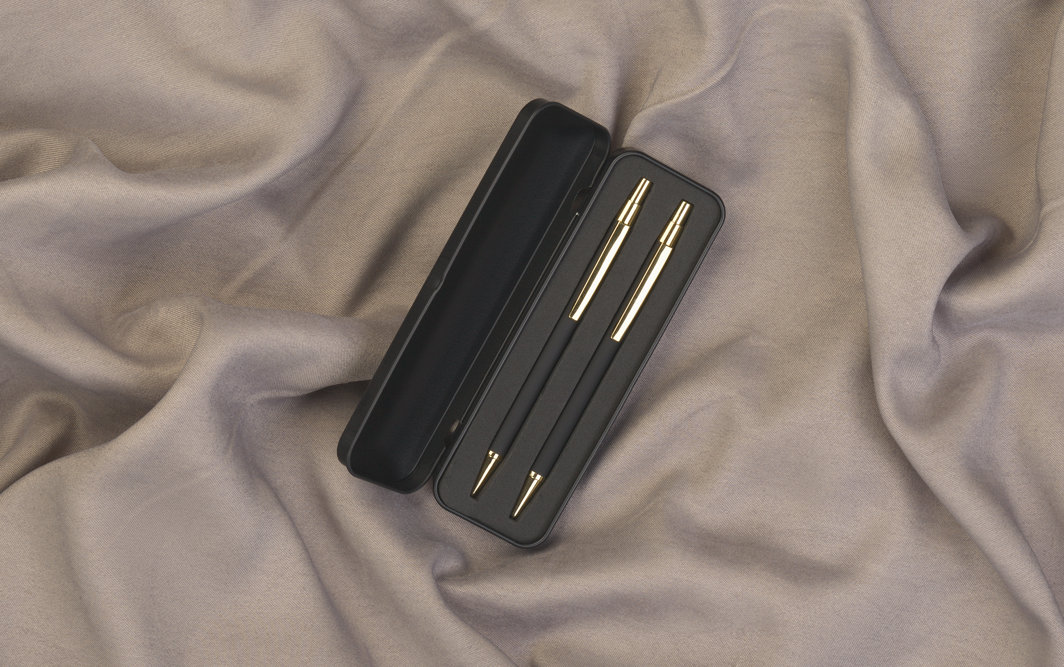 Металлическая ручка и карандаш с корпусом в покрытии soft touch в металлическом черном футляре.