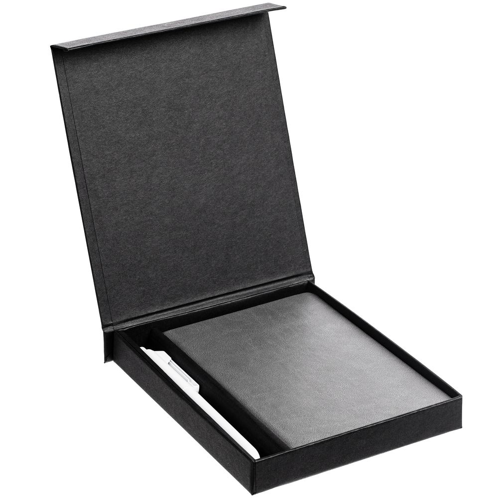 блокнот - искусственная кожа; ручка - пластик; коробка - переплетный картон